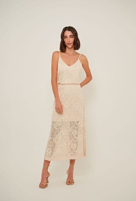 Para quem busca uma opção prática sem abrir mão do estilo, o conjunto composto por nossa saia Carol e blusa Casablanca é uma escolha certeira. Perfeito para o Réveillon à beira-mar ou para festas noturnas, esse look em tela bordada ecru traz um ar descomplicado, moderno e feminino.