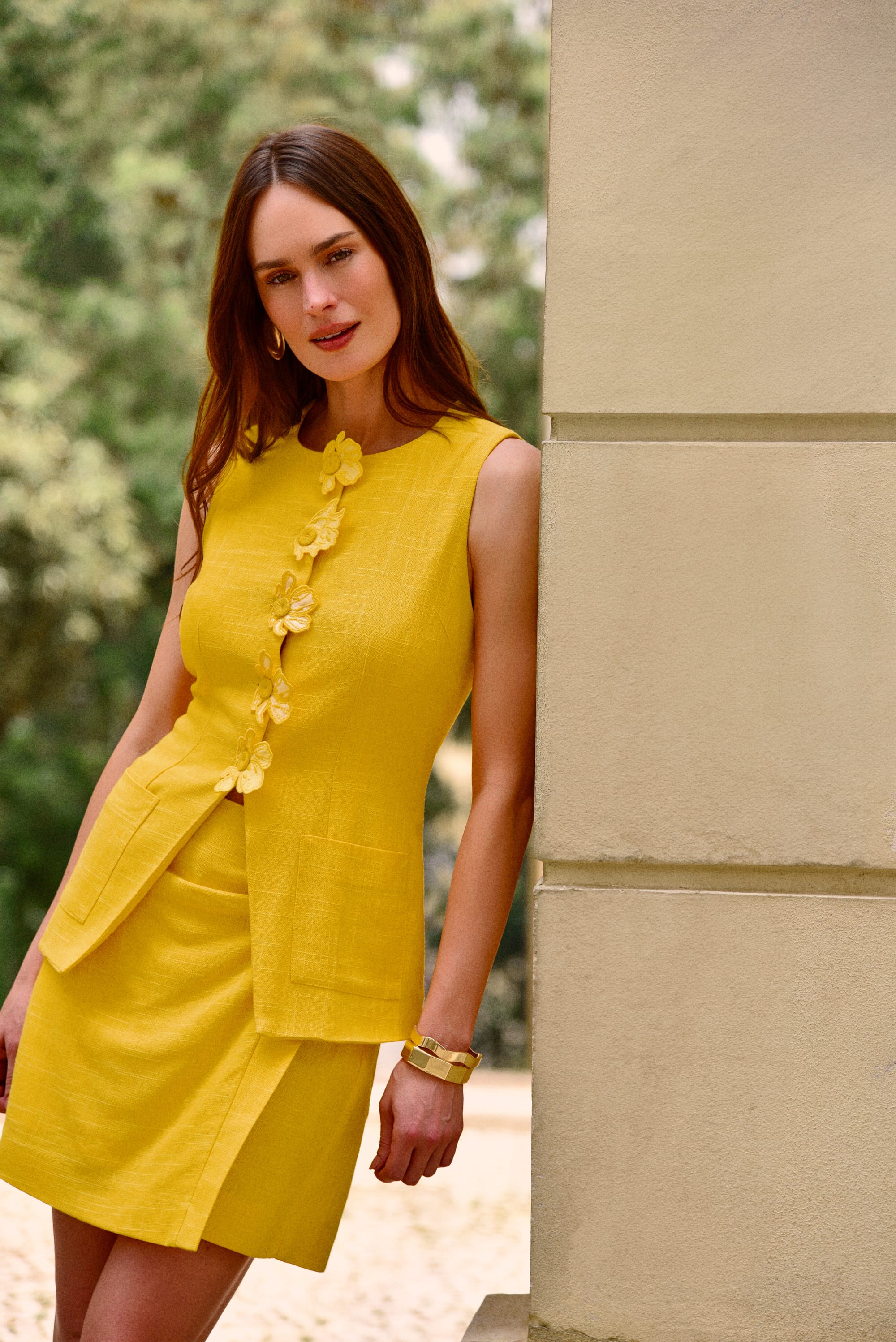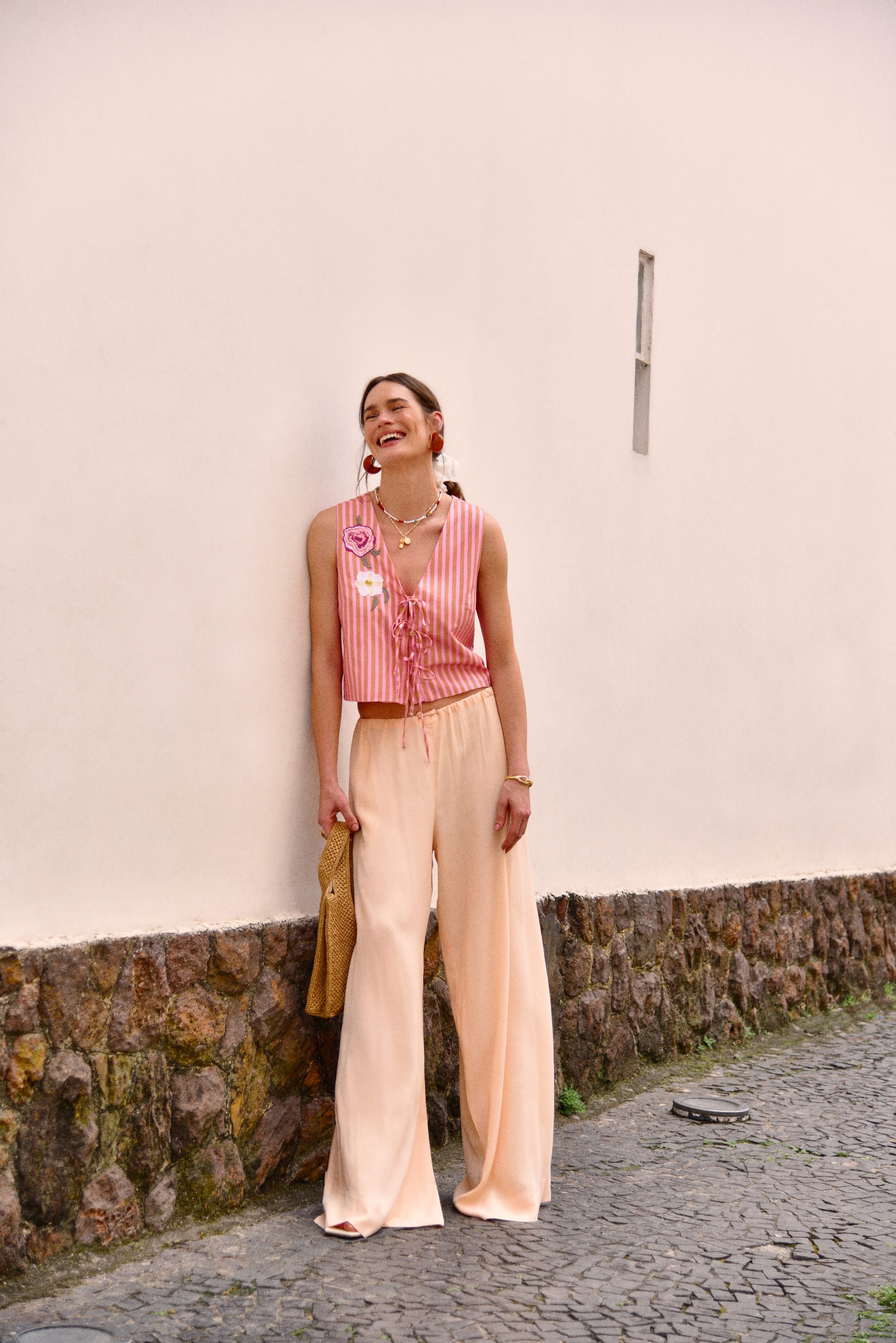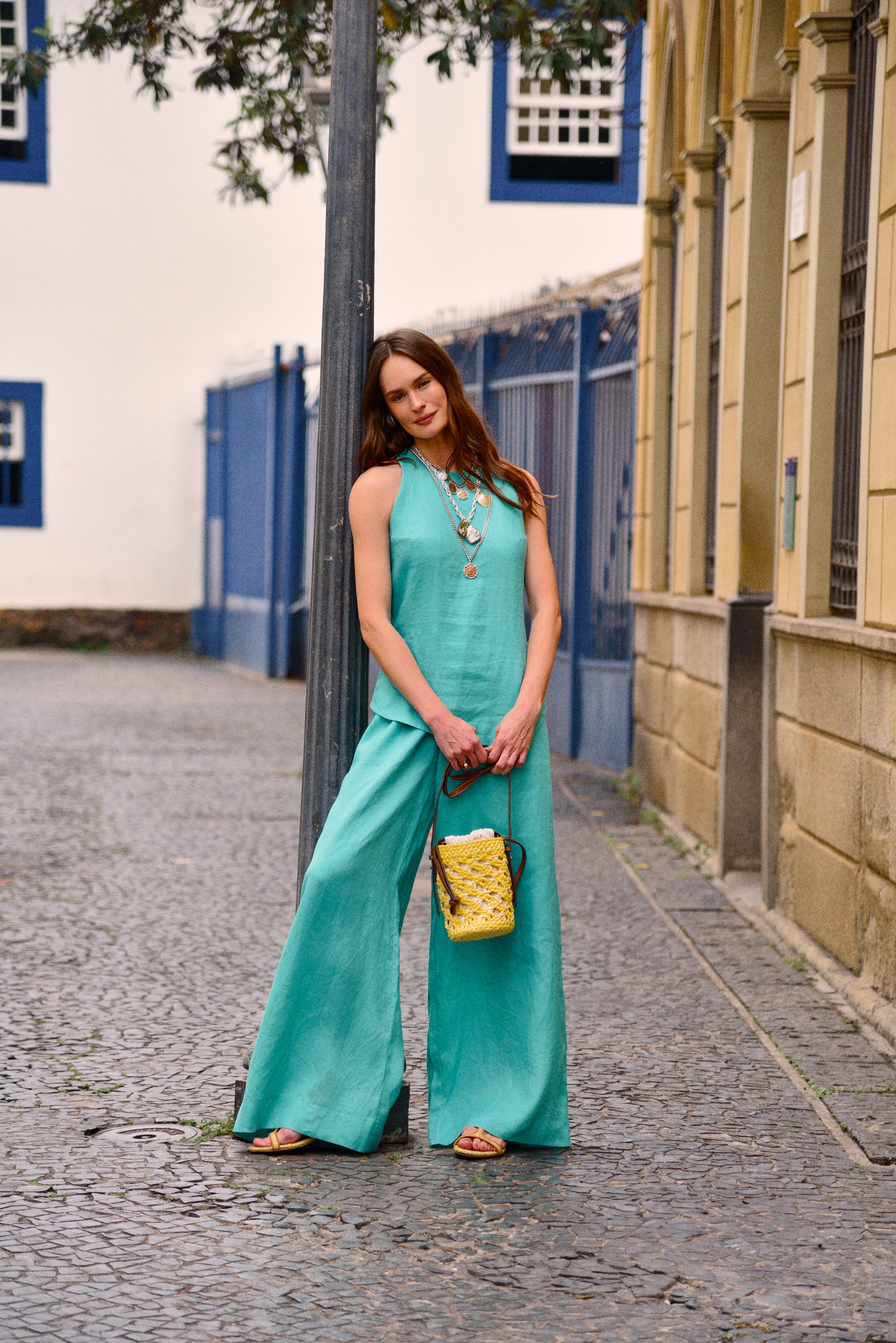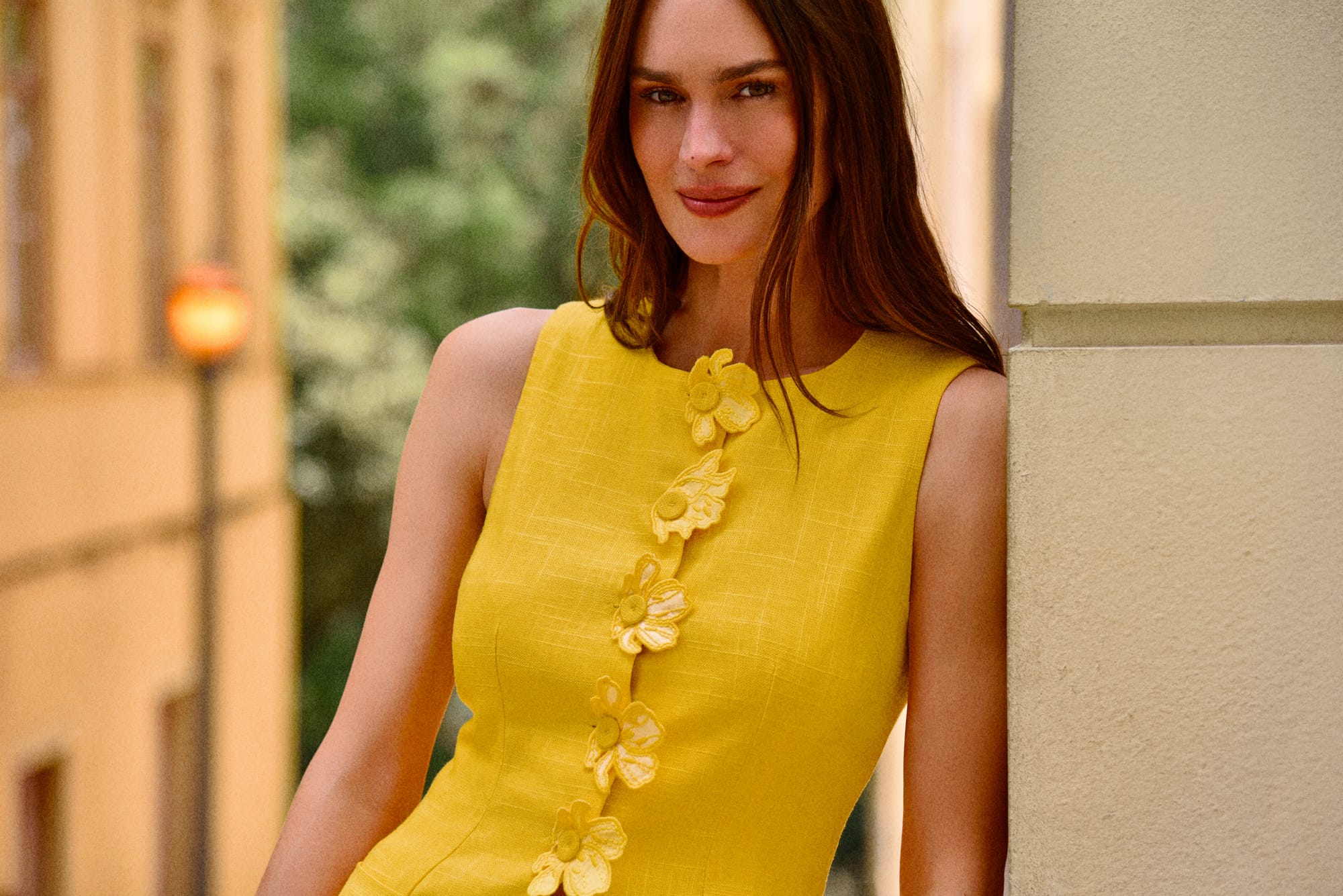 Em tecidos leves que fluem com o sopro da estação, recortes e amarrações abraçam o corpo para ocasiões que prometem ser inesquecíveis. Coletes e shorts saia acompanham o clima de descontração, fazendo brilhar todo o estilo das ruas em uma paleta de tons claros e vibrantes.