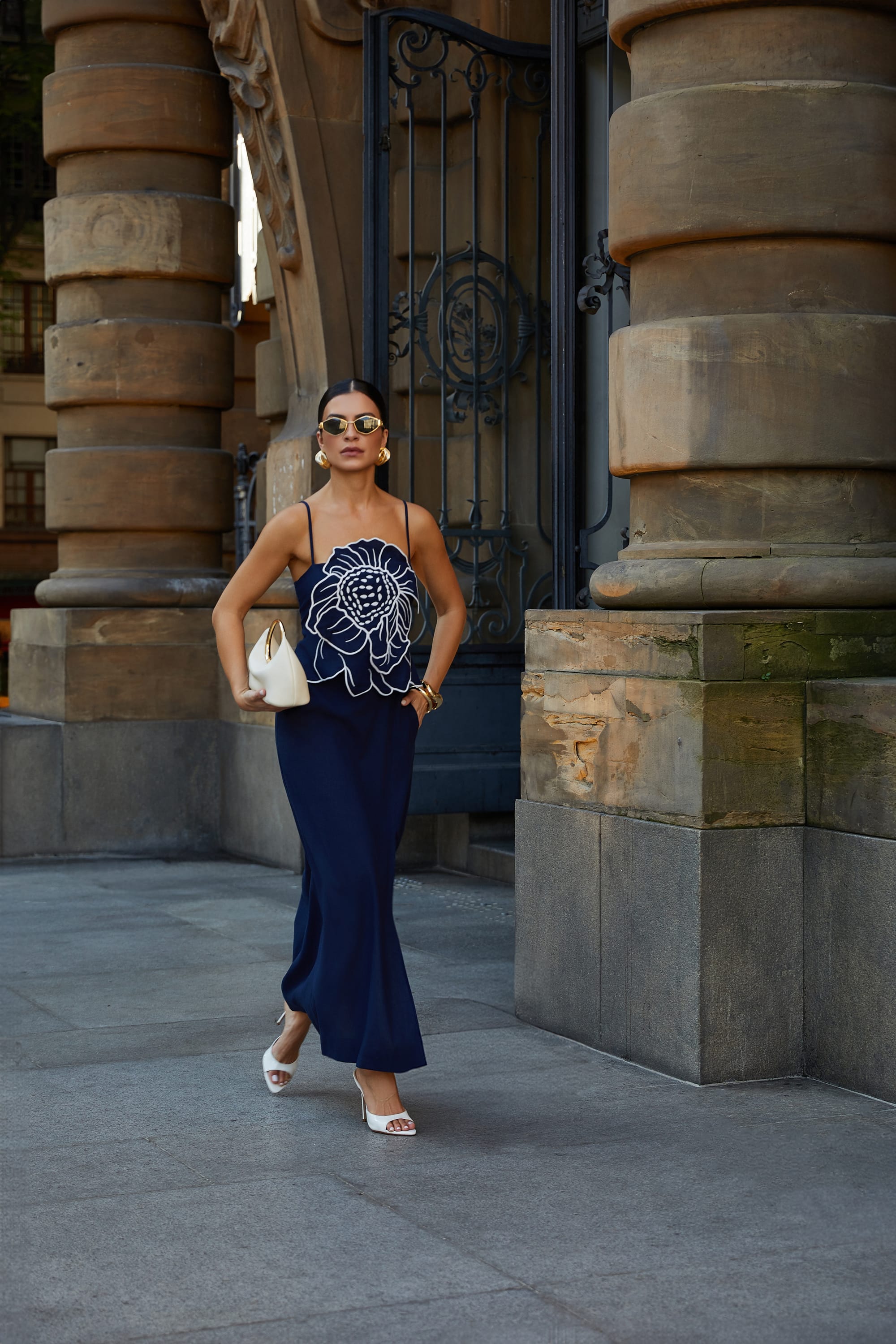 - Vestido de cambraia de linho com aplicação de flor bordada: uma peça romântica e fresca que combina a delicadeza artesanal dos detalhes florais com a sofisticação e leveza do linho, tornando-se ideal para ocasiões descontraídas e elegantes.