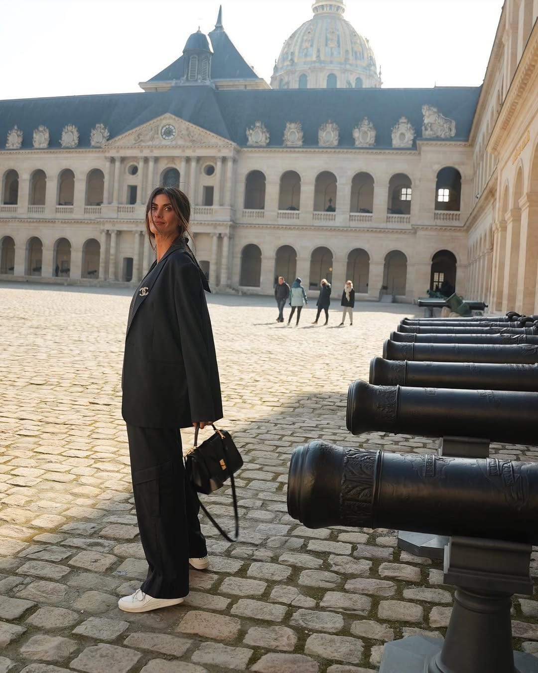 O blazer estruturado e a calça de alfaiataria são clássicos do escritório. Mas quando combinados com uma camiseta básica e um tênis branco, ganham uma pegada cool e moderna.