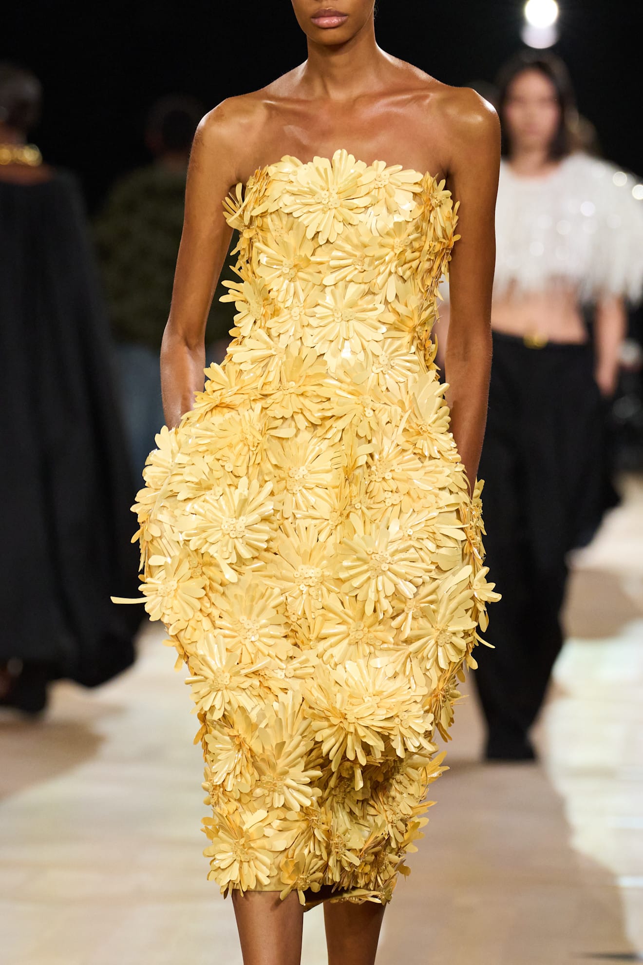 Enquanto a Chanel trouxe flores tridimensionais bordadas sobre tecidos translúcidos e a Balenciaga explorou volumes esculturais, a Miu Miu apostou na releitura lúdica das flores — pequenas, coloridas e cheias de personalidade. Essas interpretações, cada uma à sua maneira, apontam para uma mesma direção: a flor como linguagem universal da moda contemporânea.